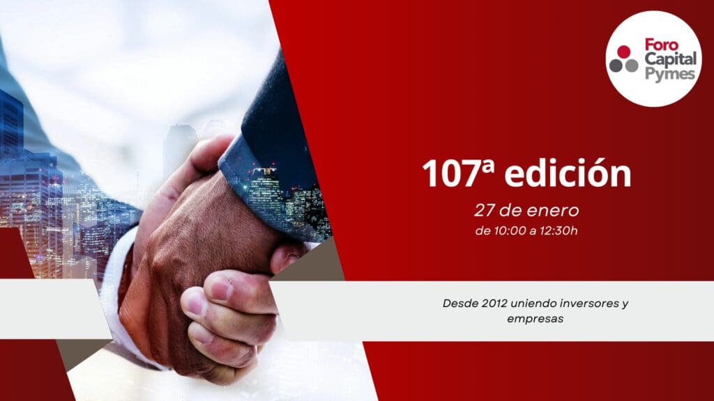 El 27 de enero por la mañana (10:00-12:30) se celebrará vía zoom el 107º Foro Capital Pymes, el primer foro de inversión de 2026.